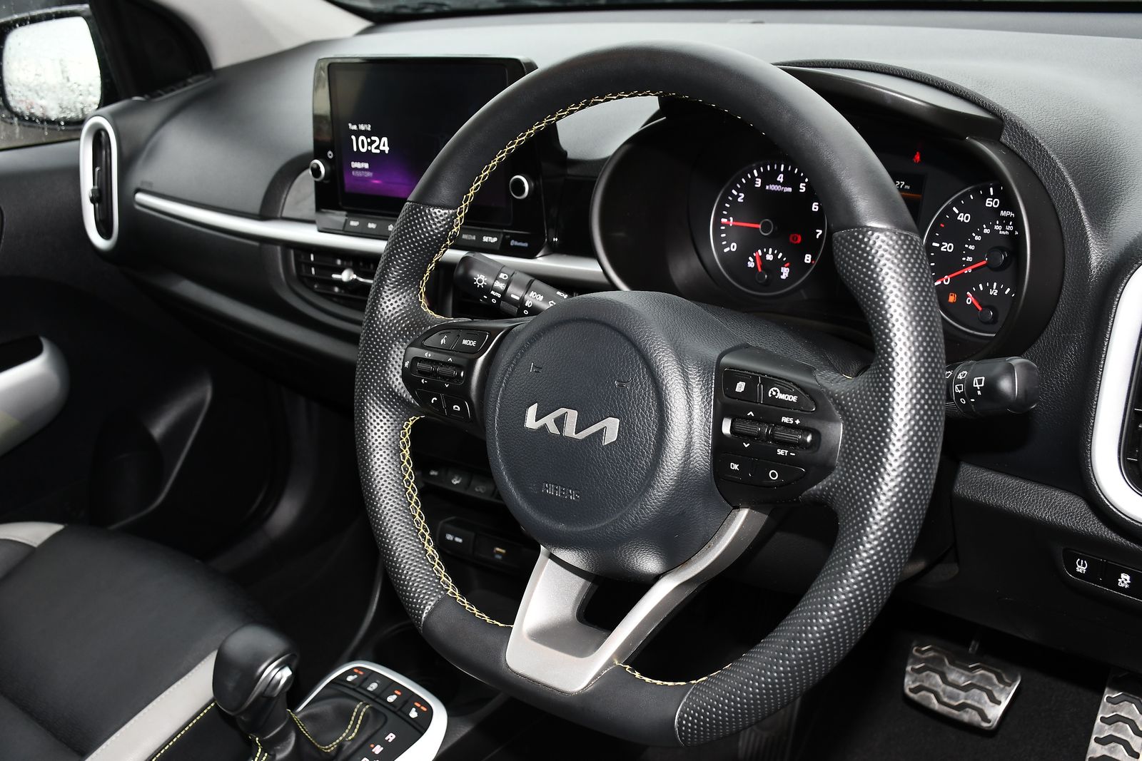 Step into big style in a compact package with the Kia Picanto X-Line S AMT 1.0—a small car that delivers huge personality, surprising capability, and outstanding efficiency. Powered by Kia’s reliable and economical 1.0-litre petrol engine, paired with the smooth AMT automatic gearbox, the Picanto offers effortless, city-friendly driving. Light, agile, and incredibly easy to manoeuvre, it’s the perfect companion for urban life while still providing enough punch for weekend adventures. The X-Line S trim transforms the Picanto into a bold, crossover-inspired standout. Rugged styling details, eye-catching alloy wheels, raised ground clearance, and sharp LED lighting give it a confident, sporty presence that turns heads well beyond its size category. Inside, you’ll find a surprisingly spacious and premium-feeling cabin packed with high-end features. Enjoy heated seats and steering wheel, smart key entry, cruise control, and a vibrant touchscreen with Apple CarPlay & Android Auto—all designed to make every journey comfortable and connected. Safety is built in, with autonomous emergency braking, lane-keeping assist, rear camera, and parking sensors, giving you total confidence in tight streets and busy environments. Compact yet capable, stylish yet practical, economical yet fully equipped—the Kia Picanto X-Line S AMT 1.0 proves that great things really do come in small packages. It’s the ideal choice for drivers who want efficiency and convenience without sacrificing design, comfort, or technology. Take it for a drive and see how perfectly it fits your lifestyle.